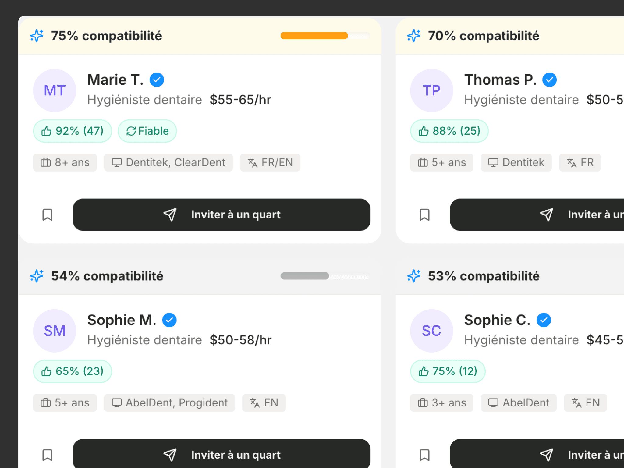 Create and publish dental shifts with clear requirements and timelines, all in one workflow.